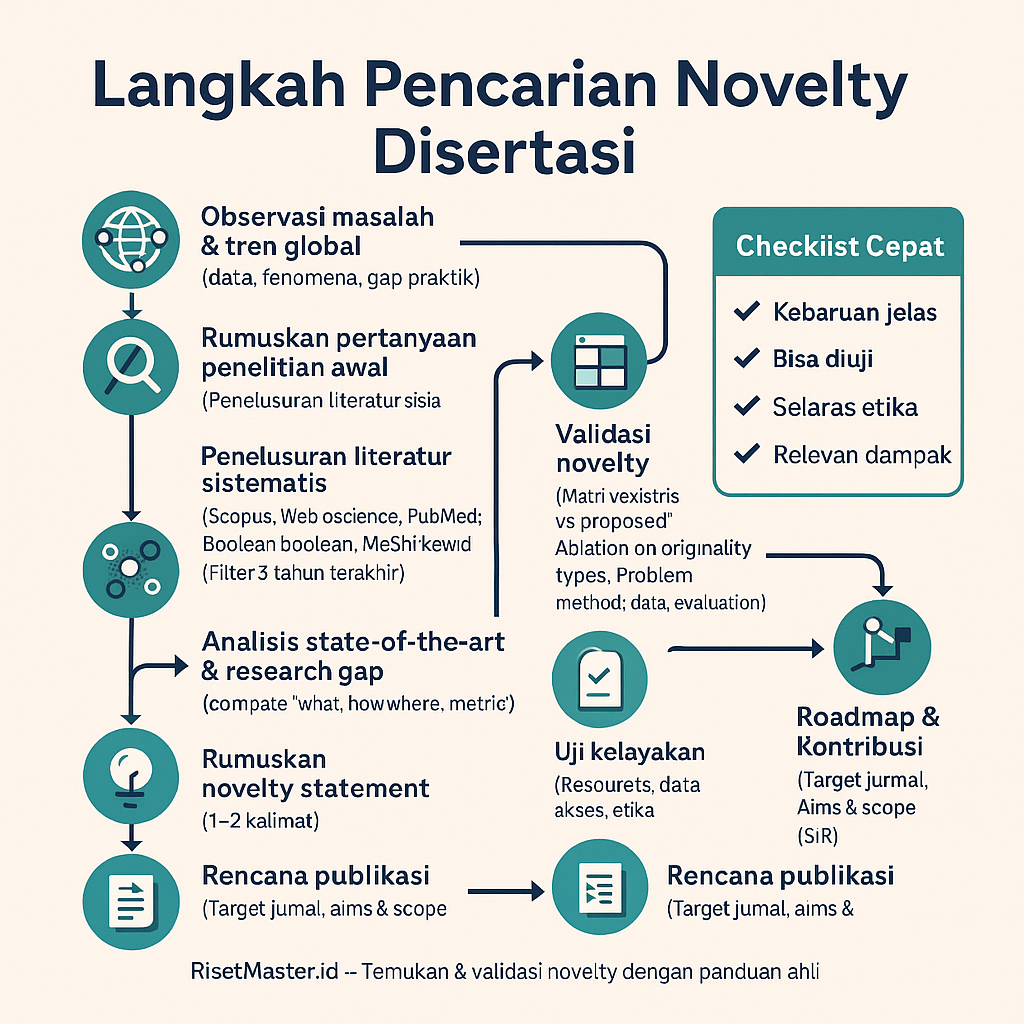 Menemukan novelty (kebaruan ilmiah) adalah syarat mutlak dalam menyusun disertasi dan publikasi di jurnal bereputasi. Namun, banyak peneliti mengalami kesulitan dalam mengidentifikasi research gap yang benar-benar valid dan diakui secara akademik.
